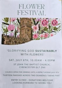 On the 6th July 2024 Beth Bruce-Gardner and Alison Godsal are representing Fairford Church Flower Team at the Flower Festival in St John the Baptist Church, Cirencester between 10am and 4pm.